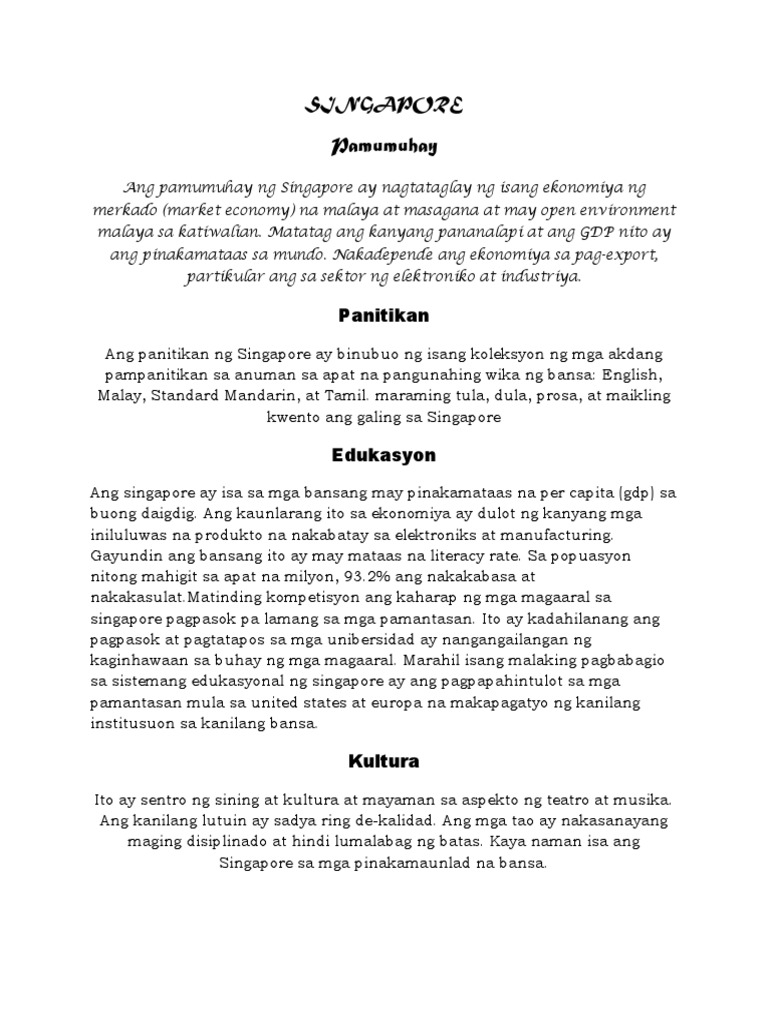 Katangian ng mga tao sa singapore. Epiko awiting- bayan alamat kasabihan salawikain bugtong at maging palaisipan Pasulat- ang paraan ng pagsasalin ng panitikan magmula nang matutunan ng tao ang sistema ng pagsulat. Ugali ng mga tao sa singapore.